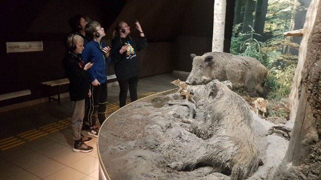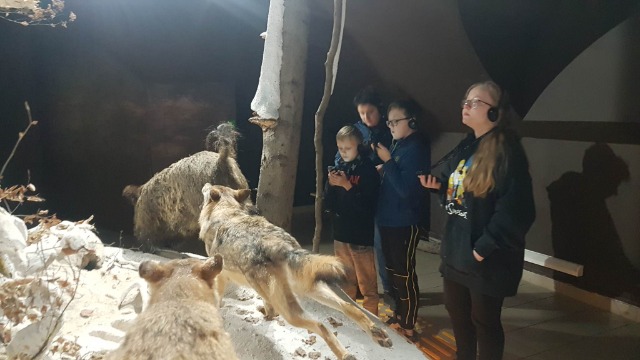 W ramach zajęć uczniowie obejrzeli wystawę tematyczną „W krainie jodły, buka i tarpana”. Jest to wyjątkowa ekspozycja, która prezentuje różnorodne środowiska RPN. Ten niepowtarzalny, multimedialny spektakl, wzbogacony odpowiednią scenografią, światłem i dźwiękiem pokazał dzieciom świat przyrody Parku i Roztocza. Uczniowie obejrzeli również film edukacyjny o walorach Roztoczańskiego Parku Narodowego.